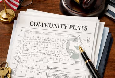 Community plats are detailed maps of a neighborhood showing property boundaries, streets, easements, and common areas. They provide a visual layout of the community and help homeowners, the HOA, and local authorities understand how the land is divided and organized.