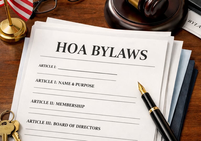 HOA bylaws are the rules that govern how the association operates. They outline how the board is elected, how meetings are conducted, how decisions are made, and how the HOA is managed.